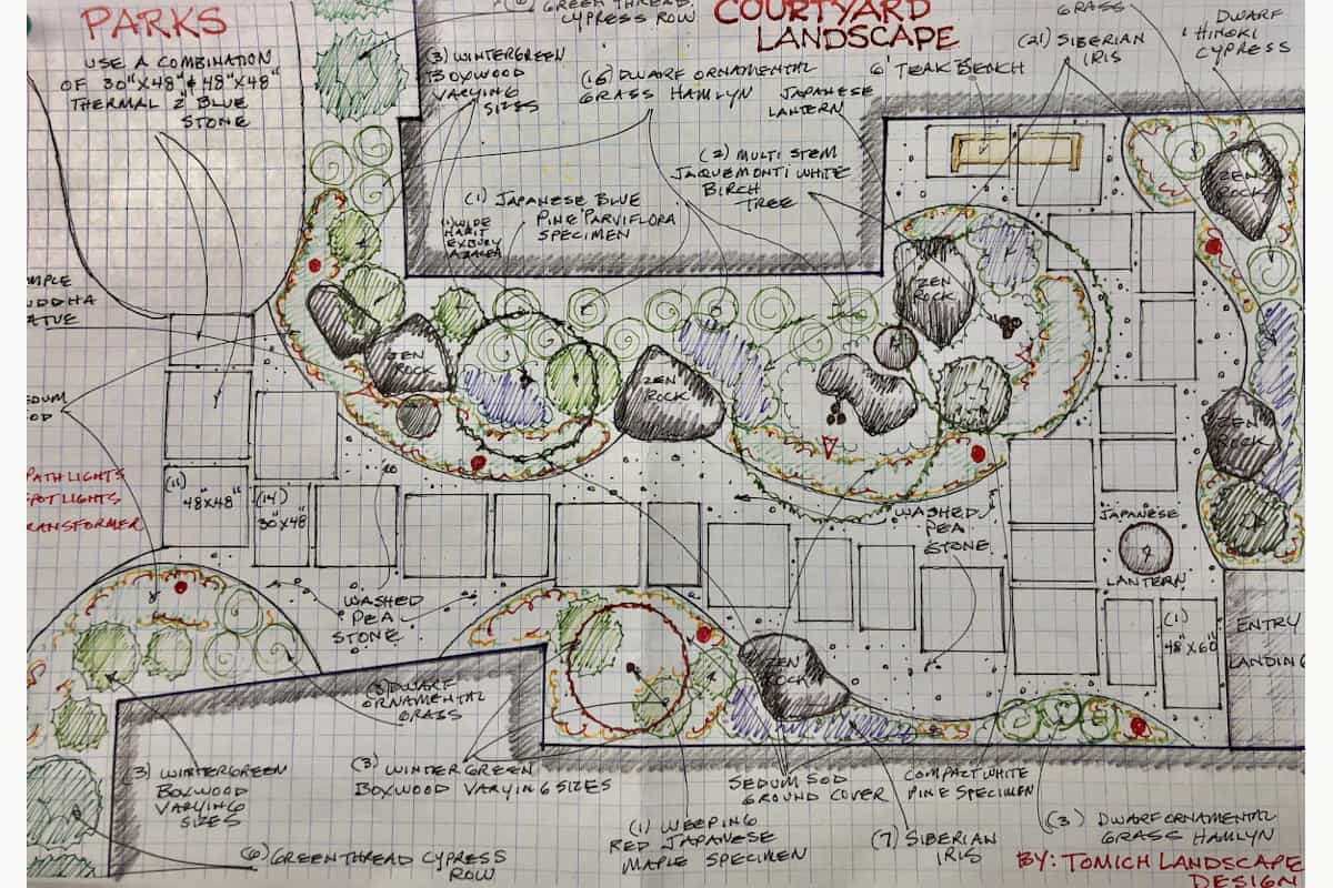 Christopher, Mark and Adam Tomich can work with you at your home or business location on a one-time consultation basis or consult to create a landscape plan. We pride ourselves in our creativity, our ability to listen to your needs and apply those to the needs of your site and most of all take care to maintain and enhance the nature of your place. We can provide a blueprinted design product with specifications, based on an hourly fee. You may choose to do the work yourself or we can provide budget cost figures for us to do a portion of or the whole landscape job. Our company organizes and works with a network of architects, engineers, building contractors and subcontractors, helping to ensure smooth logistics through the landscape process.